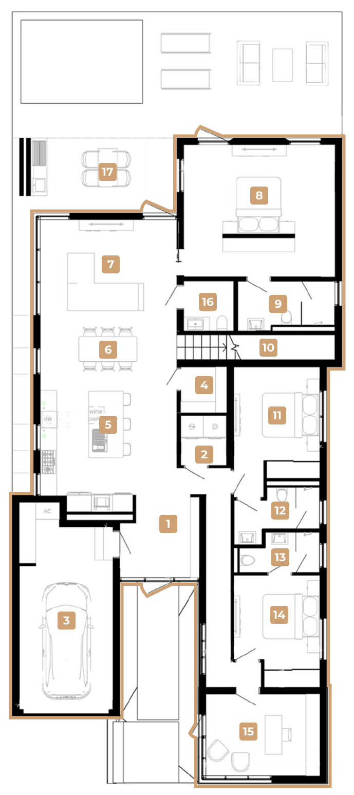 The original silhouette of the house has been carefully preserved, along with about 90% of its structural framework, including load-bearing walls, windows, and floor slabs. This not only honored the home’s history but also made the renovation highly cost-efficient. At the same time, we introduced thoughtful new elements, extensions at the front and in the spacious backyard, as well as an additional second-floor volume above the existing garage. This gave the house extra living space, including a bedroom, walk-in closet, and bathroom, substantially increasing both square footage and overall property value.