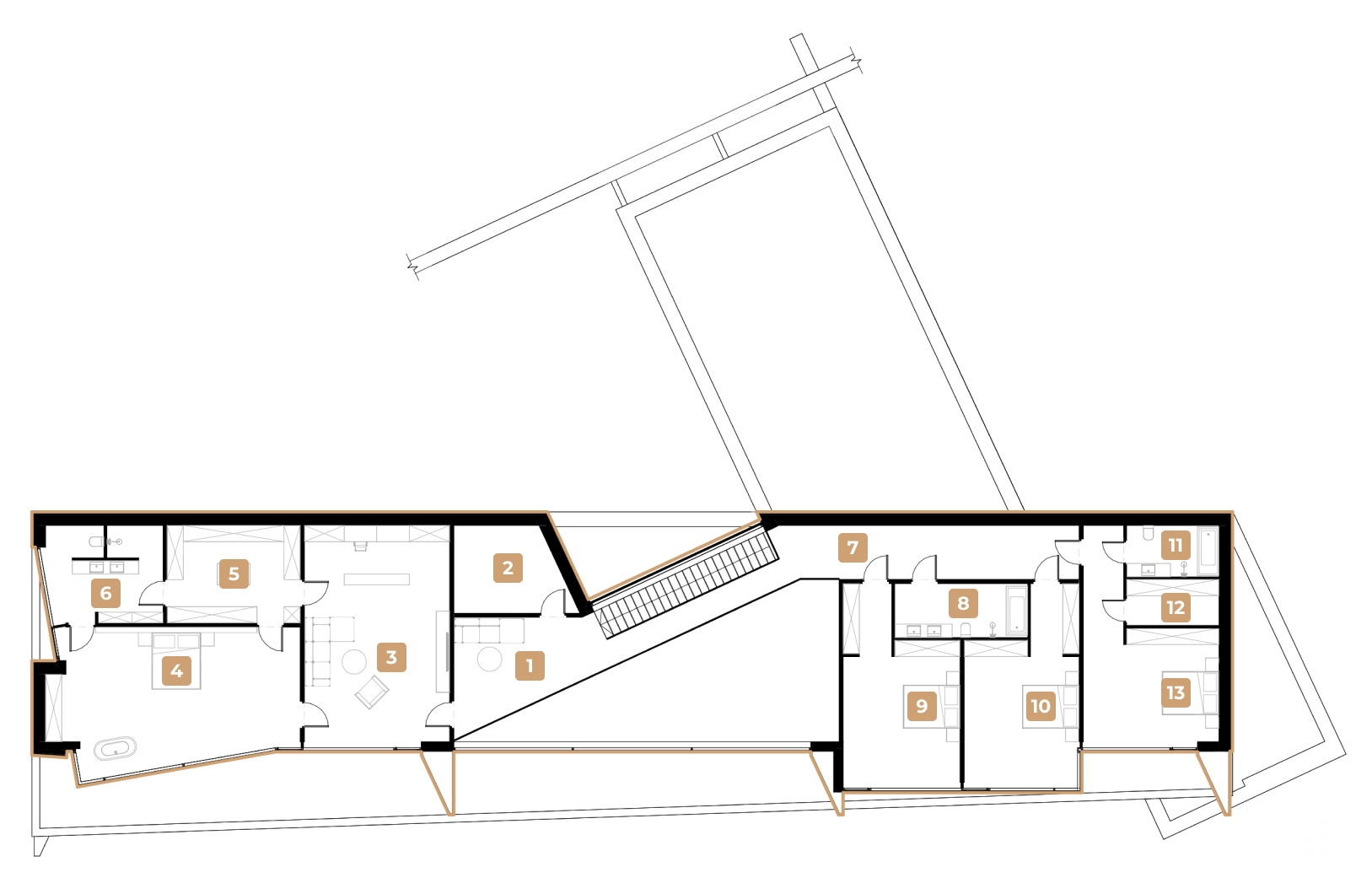 The house is completely closed from the surrounding buildings, which makes the life of its inhabitants truly secluded and private. We have thought through in detail the concept of user experience, when entering a house occurs through one gate and leaving through another. Moreover, everything is done in a single ensemble with the main outline of the building.