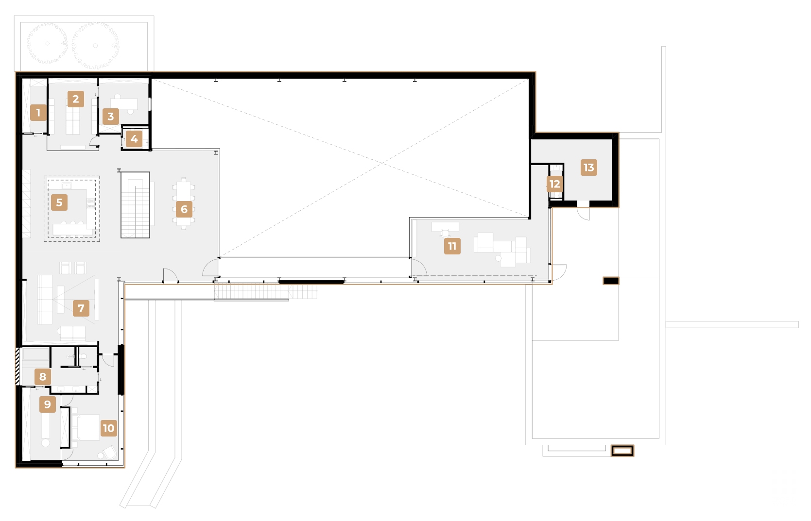 A space where dreams become architecture, and every detail is an extension of the owner's character and personal story. This is a large-scale, deeply thought-out project in which living scenarios are woven into the very structure of the house: from private routes to expressive visual axes and focal points.